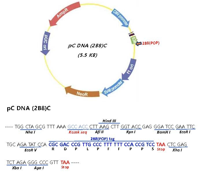 2B8(POP) tagging pC DNA vector for mammalian cell expression (BioJne Cat. #: BJV-pDN)